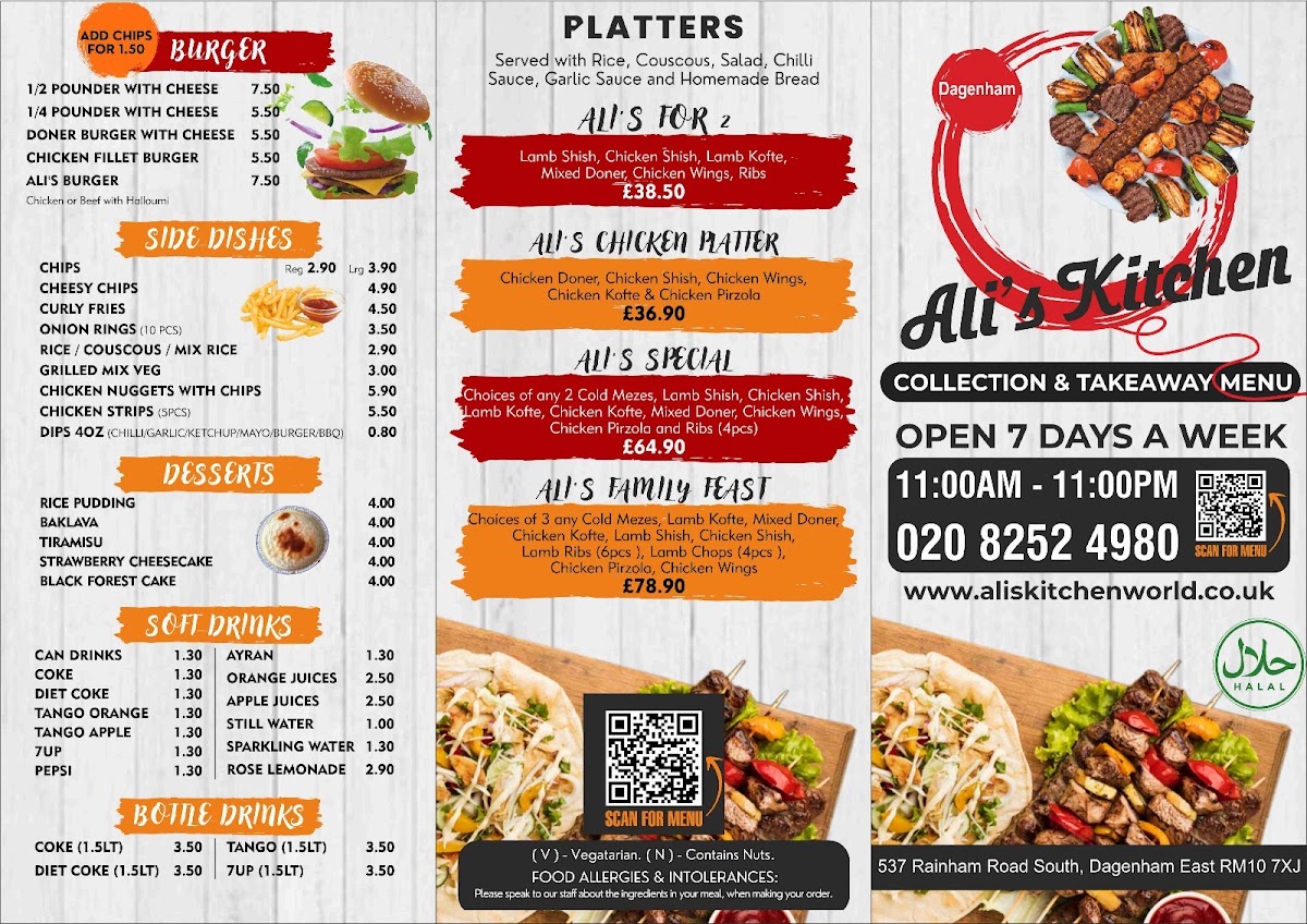 In short, the Ali's Kitchen - Dagenham Menu offers well-executed classics, excellent value, and satisfying portions-ideal for anyone craving hearty South Asian fare in East London.